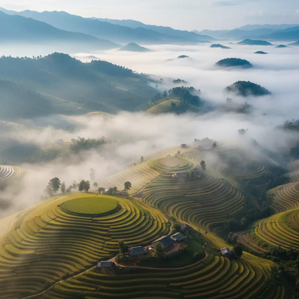 Khi nhắc đến việc Pù Luông mùa nào đẹp nhất trong năm?, đa số những người yêu xê dịch sẽ nghĩ ngay đến mùa lúa chín. Lúc này, toàn bộ thung lũng như được khoác lên mình một tấm áo choàng vàng óng ả. Hương thơm của lúa chín hòa quyện vào gió ngàn tạo nên một không gian vô cùng dễ chịu. Những thửa ruộng bậc thang xếp tầng tầng lớp lớp, uốn lượn theo sườn núi, tạo nên một khung cảnh tráng lệ mà khó có ống kính máy ảnh nào lột tả hết được.